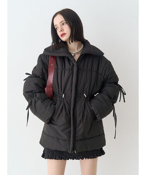 - レディース > ジャケット・アウター > 激レア‼️希少品‼️デンマーク製ダークブルー シールファーコート☆ジッパー付き ウエストマークミドルパッファーコート リボン(ダウンジャケット