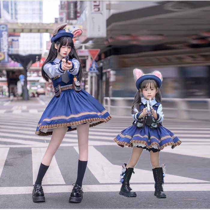 即日発送 ズートピア ジュディ コスプレ Dハロ ワンピース 11点フルセット ズートピア ジュディ・ホップス風 コスプレ ワンピース 大人 子供 余興