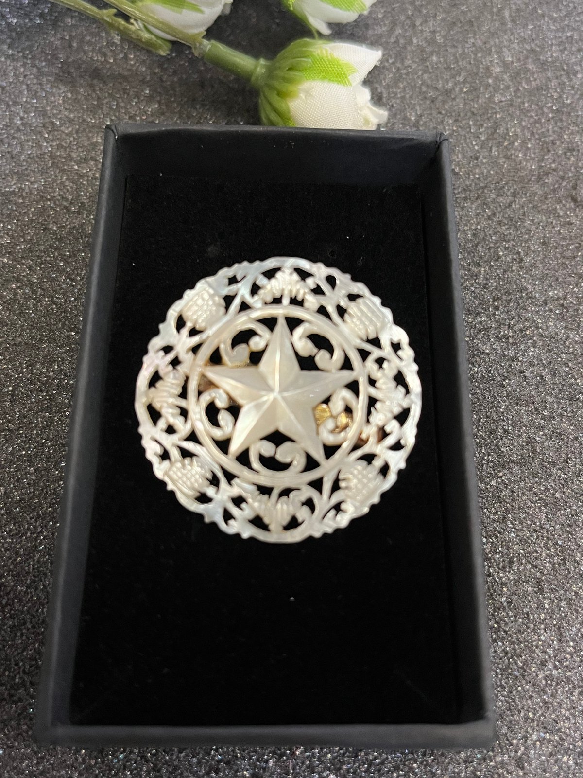 | 商品の特徴 | ブローチヴィンテージベツレヘムパール五芒星&クロスブローチせかほし。ブローチ ヴィンテージベツレヘムパール 五芒星ブローチ④ せかほし。ヴィンテージベツレヘムパール五芒星ブローチ せかほし - メルカリ。#macaronベツレヘムパールマザーオブパールで作られた透かし彫りのベツレヘムの工芸品でベツレヘムパールと呼ばれています。シャープな五芒星を中心に、幾重にも彫られたレースのような透かし彫りがとても美しいブローチです。程よい大きさで、大きめブローチにも引けを取らない存在感です。直径 約3.5cm一つ一つ職人さんが手作りしています。1930年~1960年頃に多く作られました。近年は職人の数が減り当時の品物のクオリティを再現する事は困難になっています。目立つ傷や汚れはありませんが、人の手を経た古いものになります。他にもベツレヘムパール出品中です。#ベツレヘムの星#ベツレヘムパール#白蝶貝#真珠貝#貝細工#帯留め#マザーオブパール#アンティーク#ヴィンテージ#ジュエリー#骨董品#ヴィンテージブローチ#アンティークジュエリー#ヴィンテージジュエリー#アクセサリー#工芸品#手工芸#ハンドメイド#せかほし#世界はほしいモノにあふれてる。ブローチヴィンテージベツレヘムパール五芒星&クロスブローチせかほし。美品 ミキモト ミニブローチ 本真珠 パール カブトピン ゴールド 0.6。Yves Saint Laurent✨イブサンローラン ブローチ カラーストーン。【狐さん専用】LOEWE アナグラムブローチ ロエベ ゴールド。グッチ GUCCI ブローチ シェリーライン リボン ブローチ ナイロン。ミキモト ブローチ パール サークル フォーマル 箱なし~。さくらんぼ大好き様御専用✨シャネルリップスティック型ブローチ✨。アンティーク プリカジュールエナメル アール・ヌーヴォー ブローチ お値下げ中 | ||