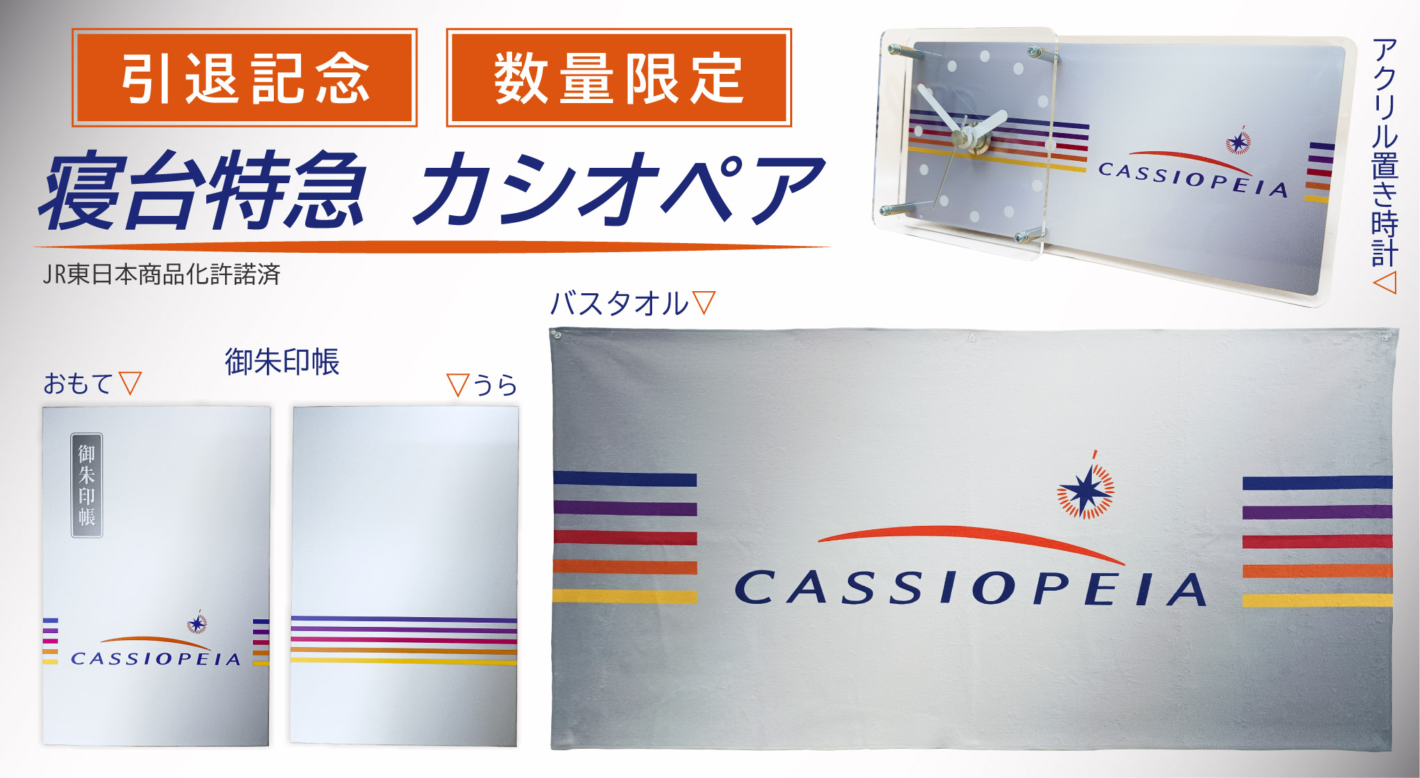 | 商品の特徴 | 入手困難】寝台特急カシオペア アクリル置き時計① 寝台特急カシオペア。寝台特急カシオペア25周年記念グッズ発売。300個限定の懐中時計は。6月引退!寝台特急カシオペア 引退記念グッズを【数量限定】で予約。2026年6月に引退した、寝台特急カシオペアのアクリル置き時計です。。寝台特急カシオペア アクリル置き時計:GENERAL STORE RAILYARD通販。プチプチに梱包して配送いたします。仙台市交通局 布製 行先方向幕 仙台市電 乗り物広告 看板 電車 鉄道 | ||