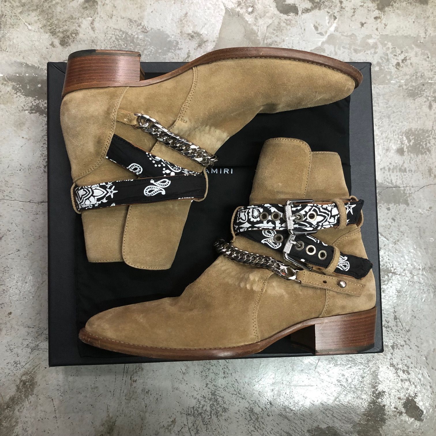 | 商品の特徴 | AMIRI バンダナブーツ EU43 AMIRI(アミリ) バンダナ バックル。AMIRI(アミリ) MSBBK-SUE スウェードバンダナバックルアンクルブーツ。AMIRI(アミリ) MSBBK-SUE スウェードバンダナバックルアンクルブーツ。AMIRI Brown Bandana Buckle Boots Amiri。AMIRI アミリバンダナブーツサイズ43ベルトのハトメが一つ外れており、若干の油染みがあります着用には問題ありません現物のみ前後裏張り | ||