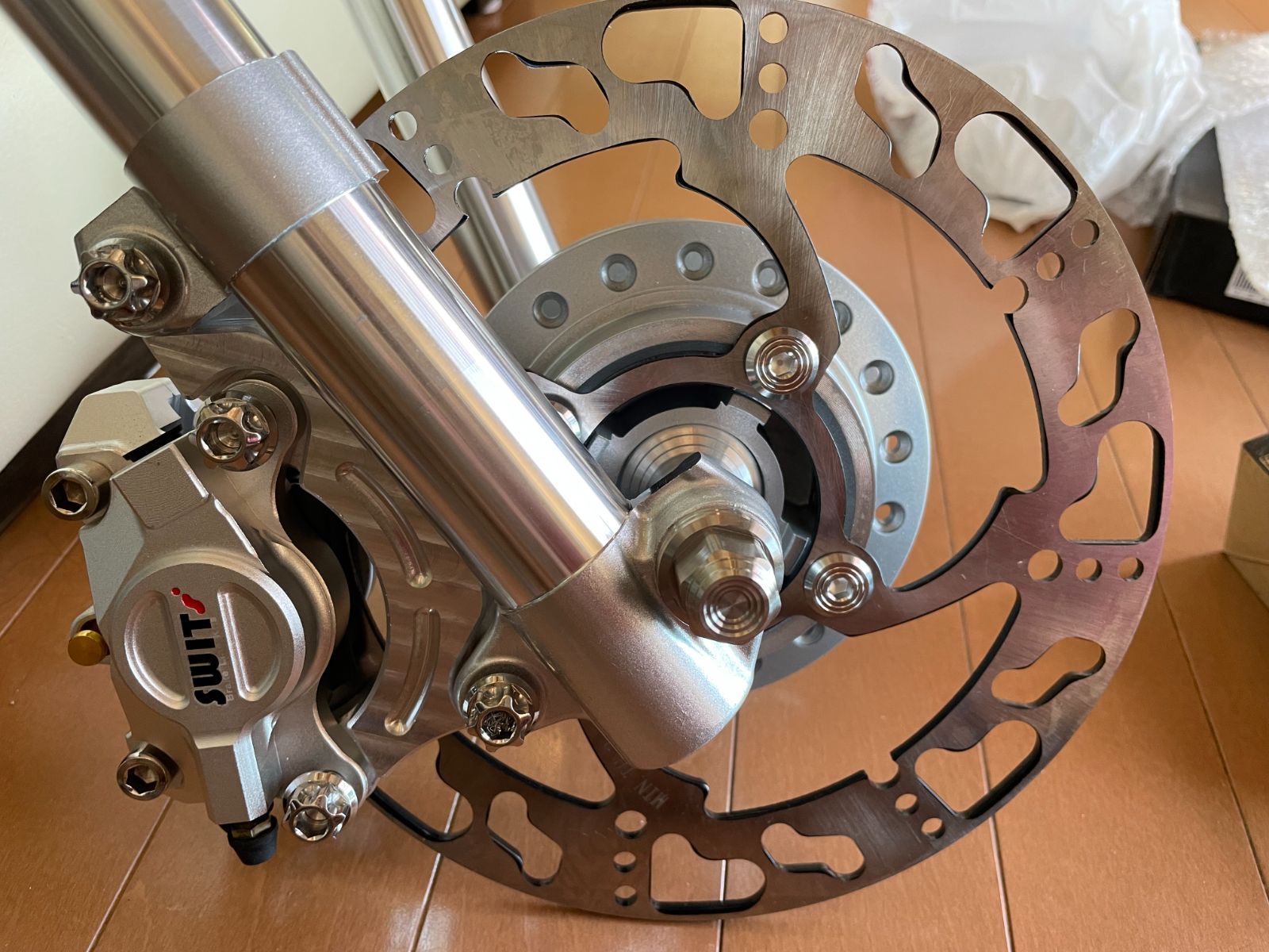 | 商品の特徴 | ホンダ スーパーカブフロントディスク化 KIT A-1 ホンダ。KITACO FRONT DISK KIT。ホンダ スーパーカブフロントディスク化 KIT A-1 - メルカリ。スーパーカブ110 WAVE110 等フロントディスクブレーキ化KITフロントフォークインナーチューブ径が26mm用のアウターチューブになります。取付サポートはございません。勿論取扱説明書もございません。タイにてレース用で販売している商品です。調整加工が可能の方のみ入札お願いします。■商品詳細(キット内容)・ディスクブレーキ用アルミ削り出しアウターチューブ ・ブレーキディスク・SWITSアルミ鍛造2potカニブレーキキャリパー・マスターシリンダー・SWITSステンレスメッシュブレーキホース・フロントアクスルシャフト・ディスクブレーキ用アルミ鍛造ハブ・レーシングスポーク・レーシング強化アクスルシャフト・アルミCNC削り出しアクスルカラー・アルミCNC削り出しキャリパーサポート商品に付いての注意事項※速度メーターの取付は考えておりません。※ベアリング、シール類、ボルト、オイル類等純正品を追加準備してください※輸入品のため外箱及び商品に傷や凹み、バリ、汚れなどがある場合もございます。※レース専用部品です。公道でのご使用はご遠慮ください。※干渉部分、ネジ穴等加工が必要になる場合があります。※取扱説明書、保証書等はありません、気になる方はご遠慮ください。※商品画像、サイズを必ず実車にて確認の上、取り付け可能か判断をお願いいたします。※タイトル内の車種名は1例であり、適合をを保証するものではございません。※車種専用であっても、年式、グレード、オプションの有無により取付できない場合がございます。※商品到着後、取付前に商品と実車の適合確認を行ってください。※取付加工等を行ってからの返品は対応出来ません。※取付時、使用時、その他で起きた全ての事故、故障に対し 保険、保証等は一切ありませんので自己責任にてご使用ください 。※取付けは整備士など資格のある熟練した方に必ずお願いします。カラー...シルバー用品の種類...その他対応車種メーカー...ホンダメーカー...ホンダ用品の種類...その他車種...Super CUB。スーパーカブ JA44 ディスクブレーキ化キット グリーン 取付説明書なし。ヴァレンティ ジュエルLEDテールランプ プリウスアルファ。Z400FX キジマ ヘッドライトステー 当時物。シグナスX3型 LEDスモークテールランプ。ヤマハ パッソル 2E9 テールレンズ 【クリアー】。シビエ デュアルカウル フォグランプ。キット込GS400/425/550/750 ☆流星テールランプLEDユニット☆。CIBIE シビエ ヘッドライト レンズ 凹み 当時物 150パイ。ゼファー400純正ライトステー。当時物 マーシャル 180φ ヘッドライト MARCHAL。86 / BRZ Valenti ジュエルLEDテールランプ 60-1412。ドゥカティss1000ds用 純正ヘッドライト。当時物SUZUKI刻印IPF凹レンズ付きヘッドライトASSYGT380GS400。シグナス3型 APP色変更 デイライト ポジション。chaft LEDウィンカーポジションライト機能付、テールライト機能付きセット。パーツ K。JOKER MACHINE ヘッドライトブラケット ブラック。80ハリアー LANBO LEDデイライトキット 未使用品 | ||